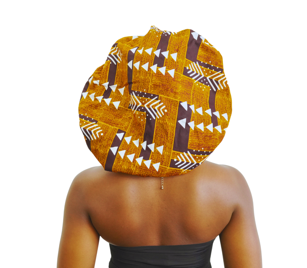 Our Bonnets are constructed with the finest quality Ankara to keep you looking fashionable during those bad hair days and when it’s time for bed.